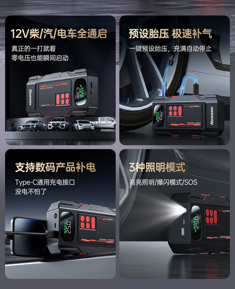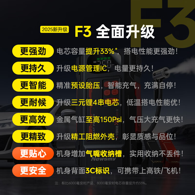 纽曼(Newsmy)【3C认证】F3汽车应急启动电源搭电宝充气泵一体机车载电瓶摩托车