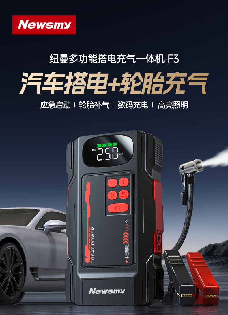 纽曼(Newsmy)【3C认证】F3汽车应急启动电源搭电宝充气泵一体机车载电瓶摩托车强启打气泵户外移动电源打火神器