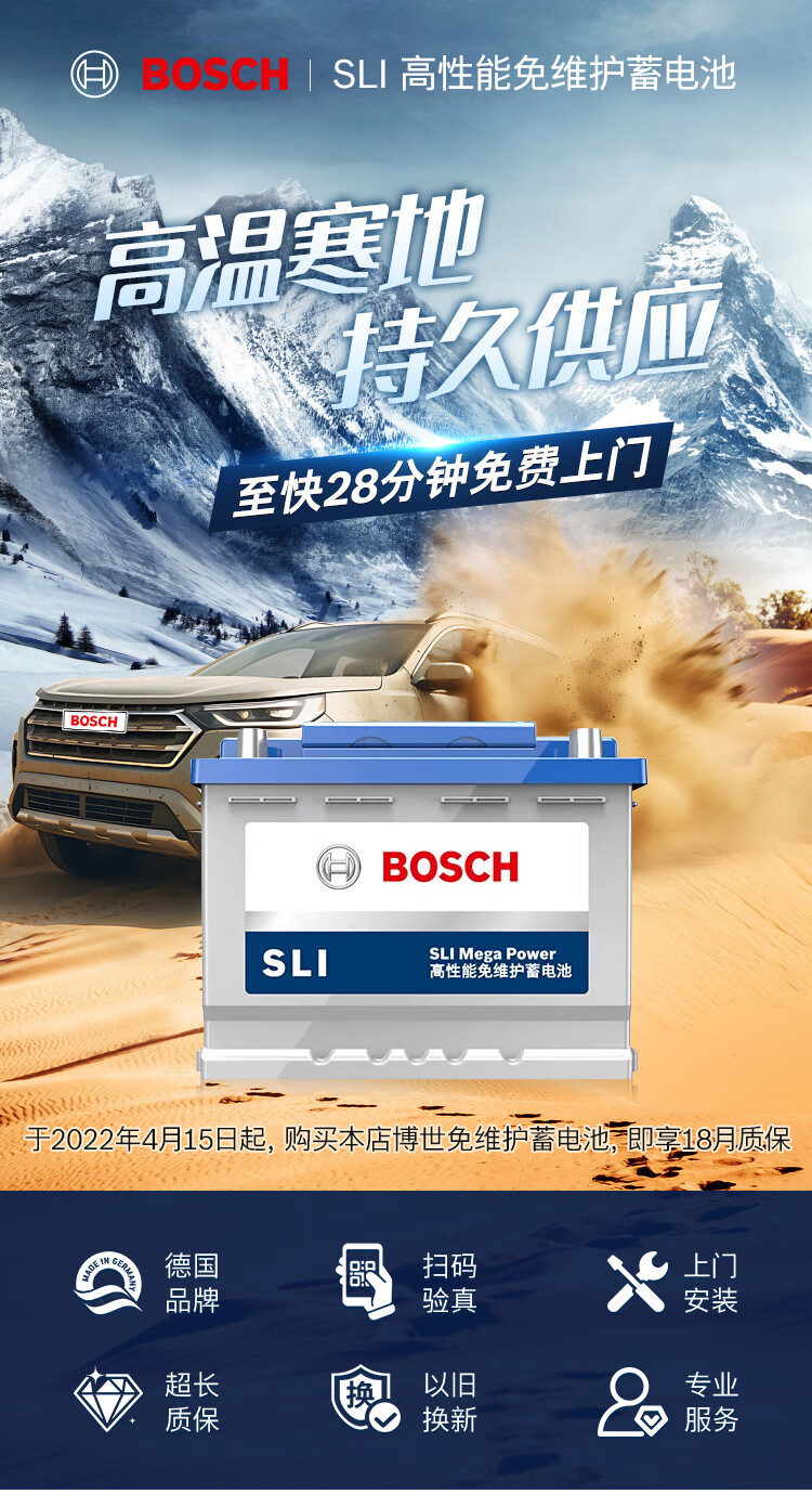 博世(BOSCH)汽车电瓶蓄电池动力神免维护L2-400 12V尚酷速腾以旧换新