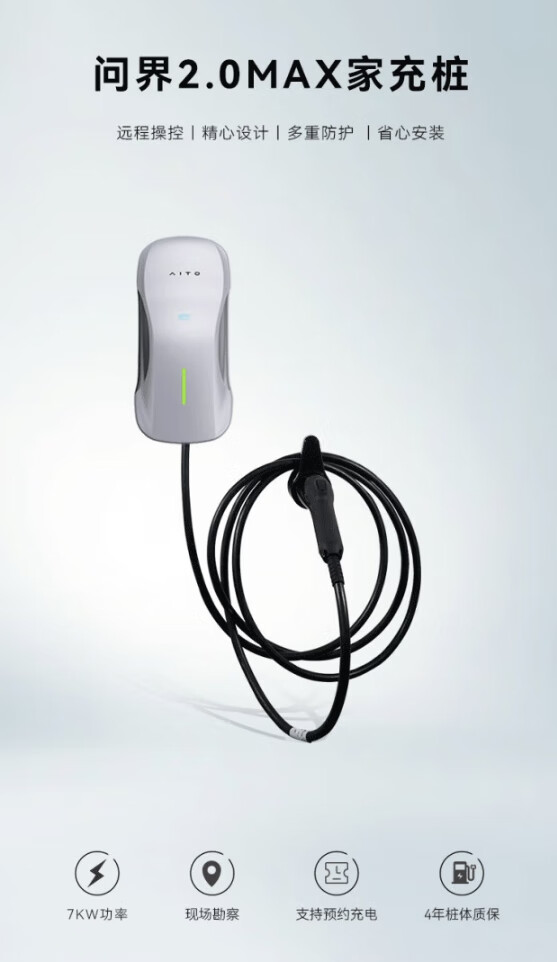 商品名称:赛力斯汽车原厂2.0MAX充电桩 AITO问界M5/M7/M5EV/M9/智界S7家用充电桩 2.0MAX充电桩7kW(包30米安装)