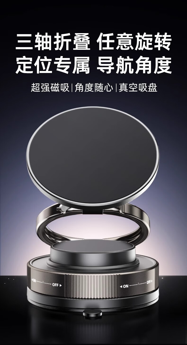 商品名称:真空吸盘手机磁吸支架多功能车载2025新款中控台防抖导航车内专用 【升级强磁吸附】CCT28曜石黑