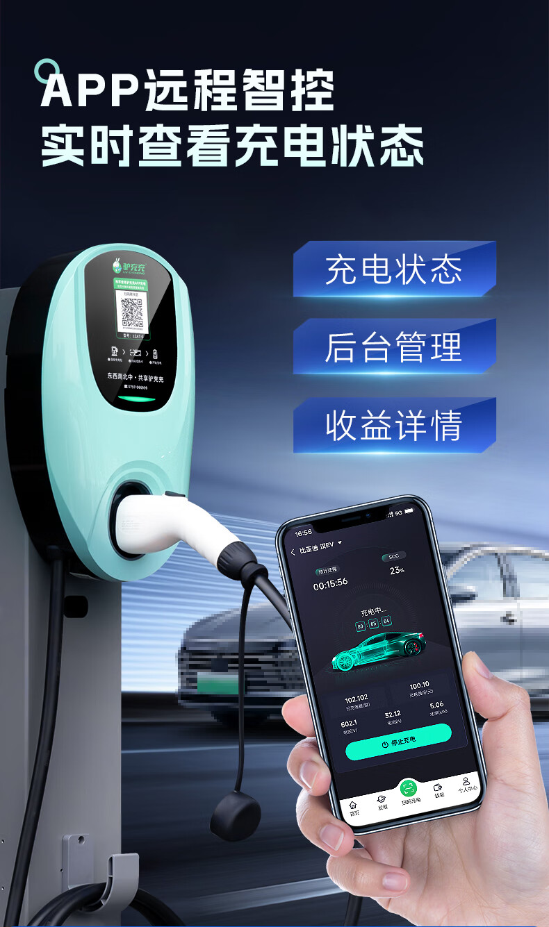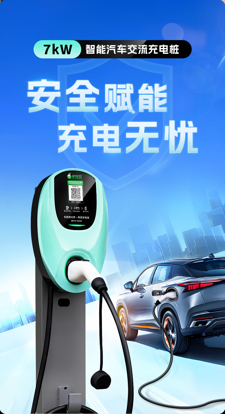 商品名称:驴充充充电桩7kW新能源电动汽车家用商用220v交流充电桩1ZA7-6 32A/7KW充电桩-扫码+刷卡【壁挂款】